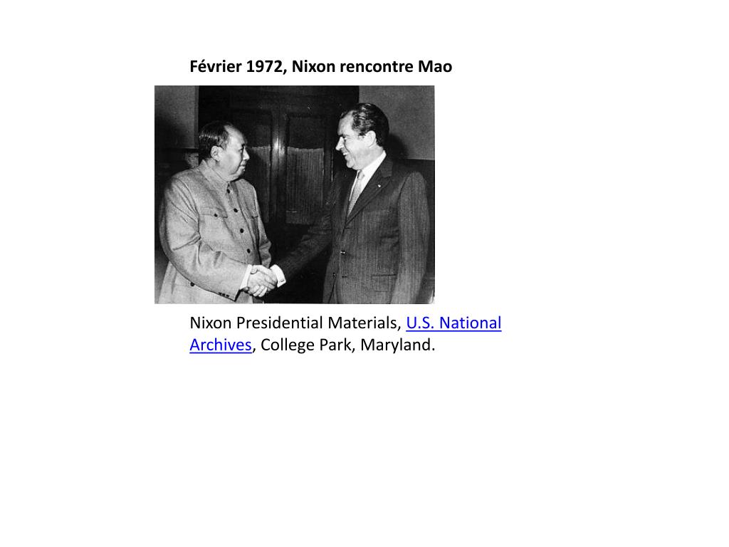 Février 1972, Nixon rencontre Mao Nixon Presidential Materials, U.S. National Archives, College Park, Maryland.