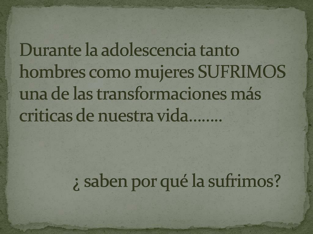 Durante la adolescencia tanto hombres como mujeres SUFRIMOS una de las transformaciones más criticas de nuestra vida…….. ¿ saben por qué la sufrimos?