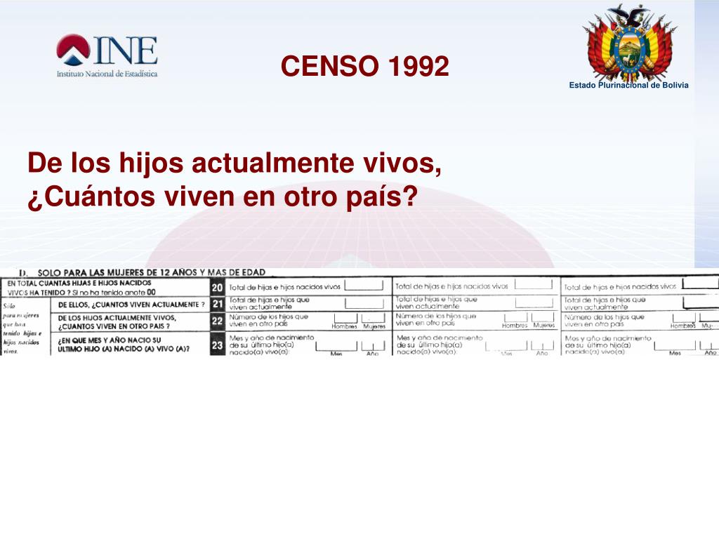 Estado Plurinacional de Bolivia CENSO 1992 De los hijos actualmente vivos, ¿Cuántos viven en otro país?