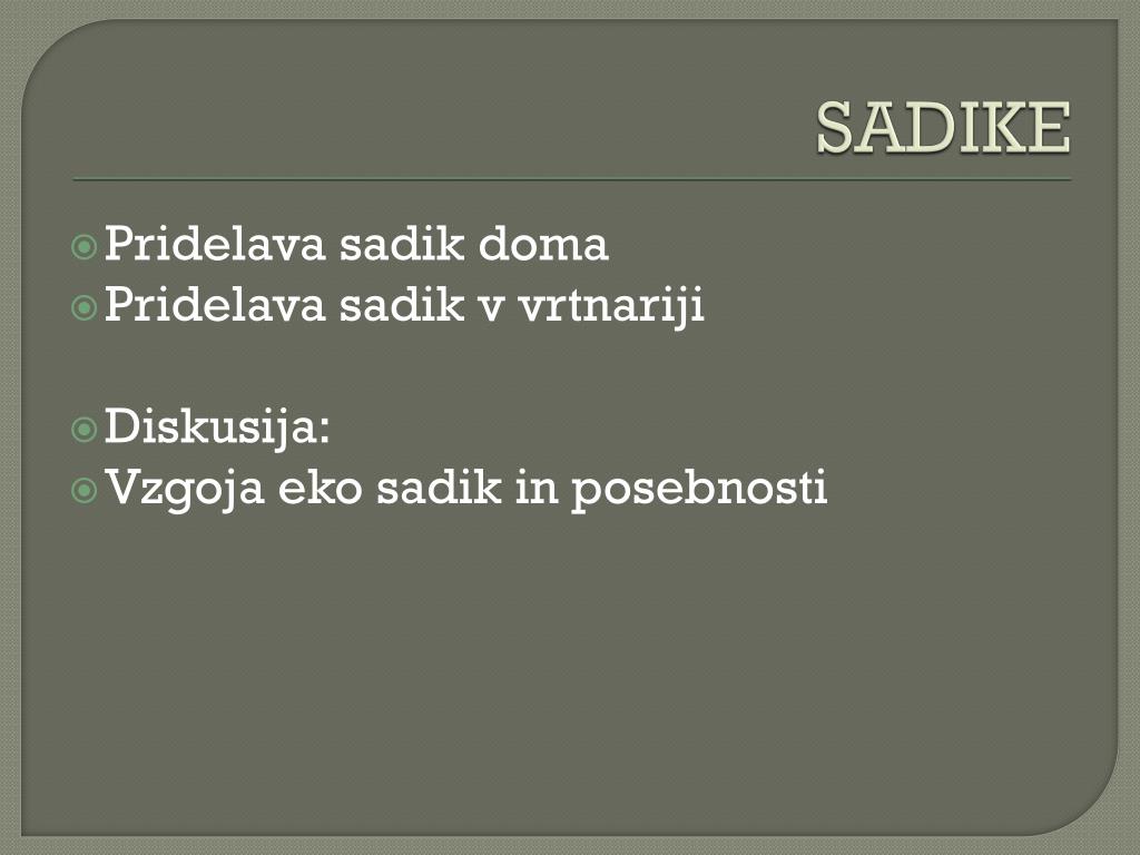 SADIKE Pridelava sadik doma Pridelava sadik v vrtnariji Diskusija: Vzgoja eko sadik in posebnosti