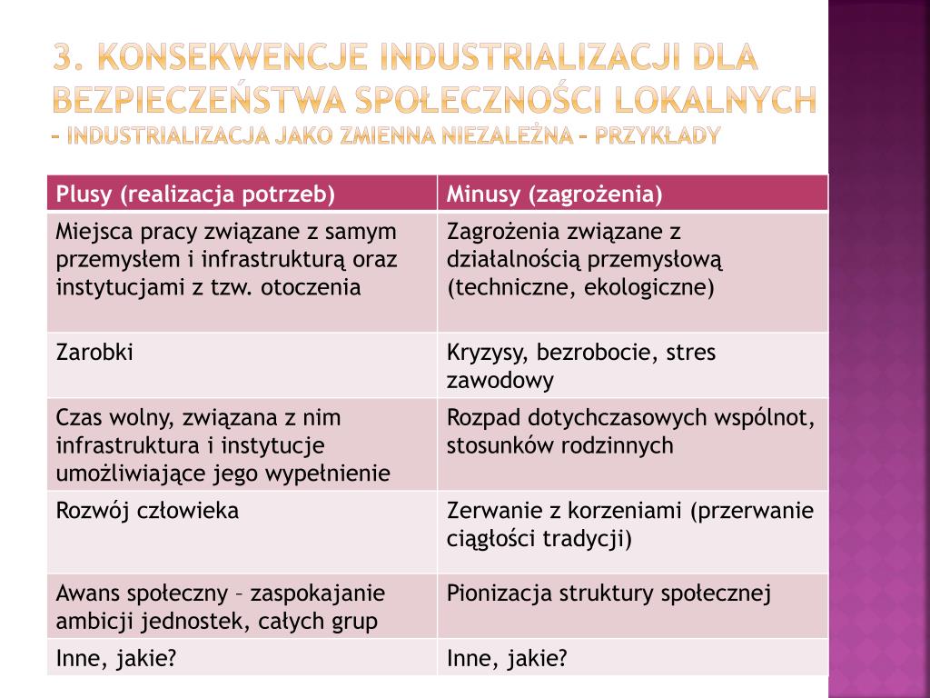 3. Konsekwencje industrializacji dla bezpieczeństwa społeczności lokalnych – industrializacja jako zmienna niezależna – przykłADY