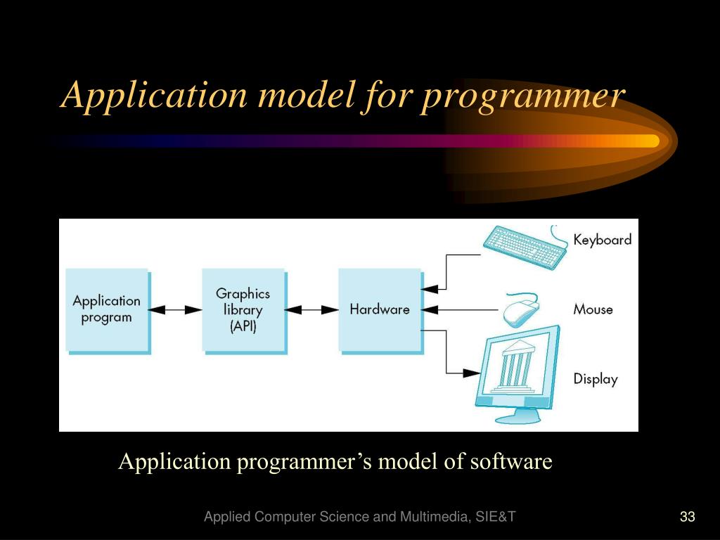 Application model for programmer Application programmer’s model of software Applied Computer Science and Multimedia, SIE&T