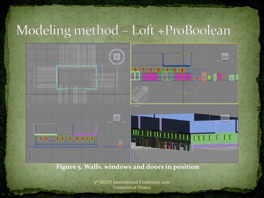 Modeling method – Loft +ProBoolean • Figure 5. Walls, windows and doors in position 5th SEEDI International Conference 2010 Centuries of Viziers
