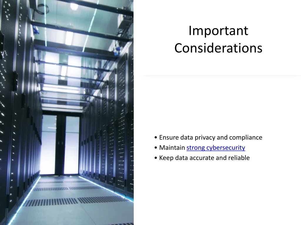 11. Important Considerations • Ensure data privacy and compliance • Maintain strong cybersecurity • Keep data accurate and reliable