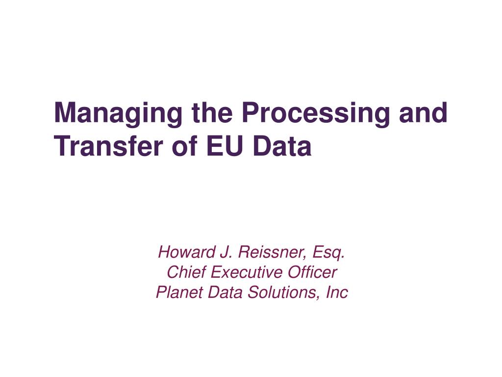 Managing the Processing and Transfer of EU Data Howard J. Reissner, Esq. Chief Executive Officer Planet Data Solutions, Inc