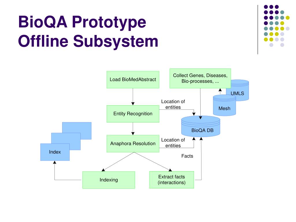 Main Components of BioQA Phase 1 • Question Processing and Query Formation • Entity Recognition • Indexing • Pronoun Resolution • Extraction • Ranking