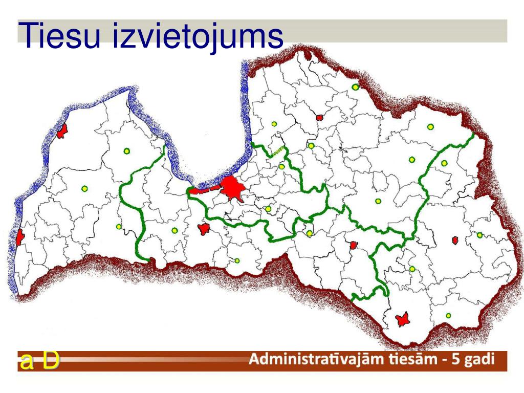 Galvenā problēma (laiks) • Lietas (ne-)skatīšanas termiņi ir pārāk ilgi (sākotnējais ātrums cerēts max 1½ gadi) • Procesuālās ekonomijas robežas & riski • Tiesnešu skaits vai tiesnešu palīgu loma? • Rakstveida procesa veicināšana • Speciālās tiesas vai tiesnešu specializācija? • Nākotnes tiesu iestādījumu redzējums • Izmantot XXI gadsimta sakaru līdzekļus a D