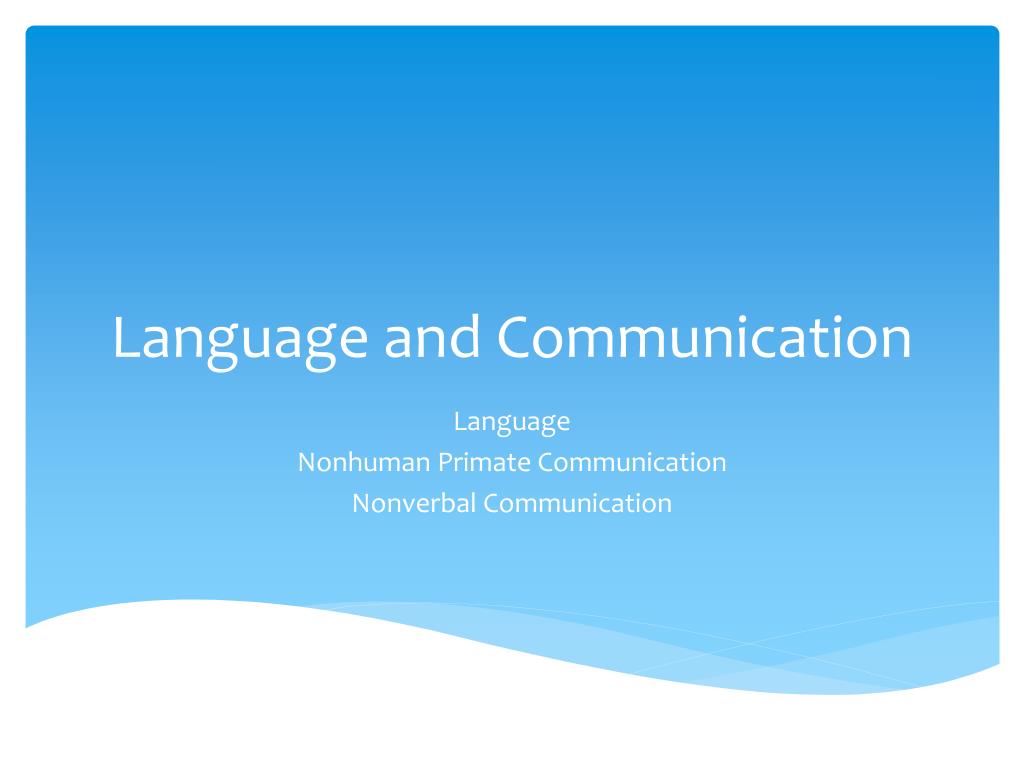 Language and Communication. Language Nonhuman Primate Communication Nonverbal Communication. Language. Primary means of communication Transmitted through learning Associations between words and what they stand for Past and future. Nonhuman Primate Communication. Call Systems