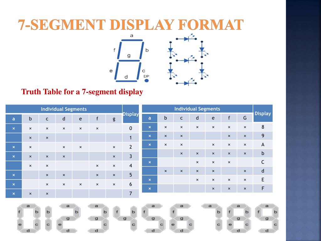 7-Segment Display Format Truth Table for a 7-segment display