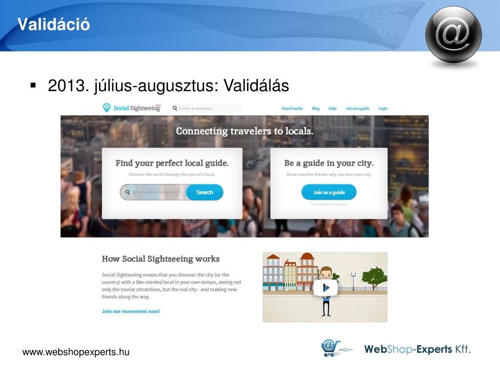 Social Sightseeing • 2013. május-június: Bootstrapping • Eredmény: működőképes MVP