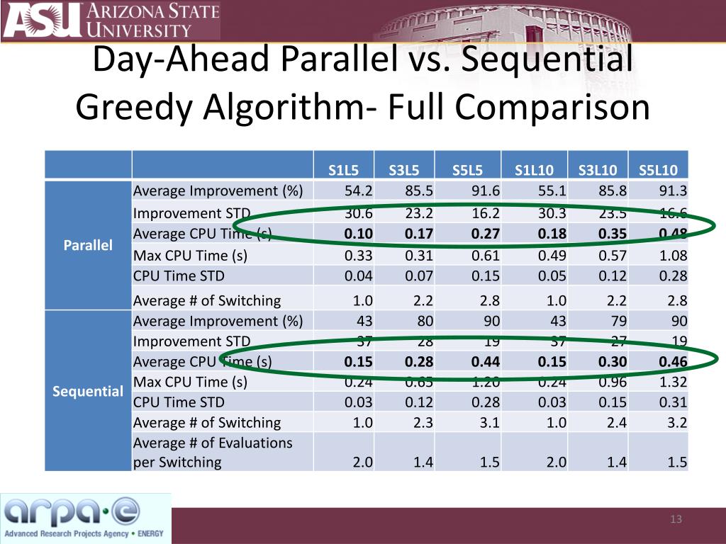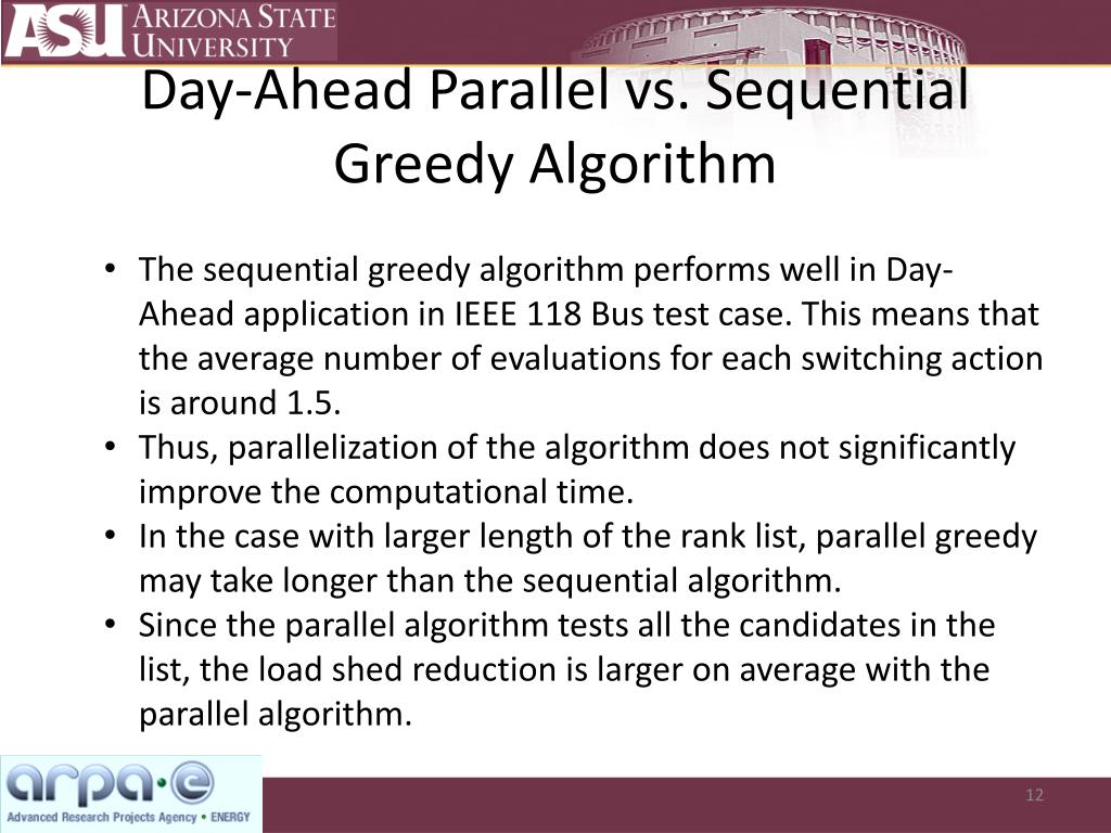 Day-Ahead Parallel vs. Sequential Greedy Algorithm Parallel Sequential