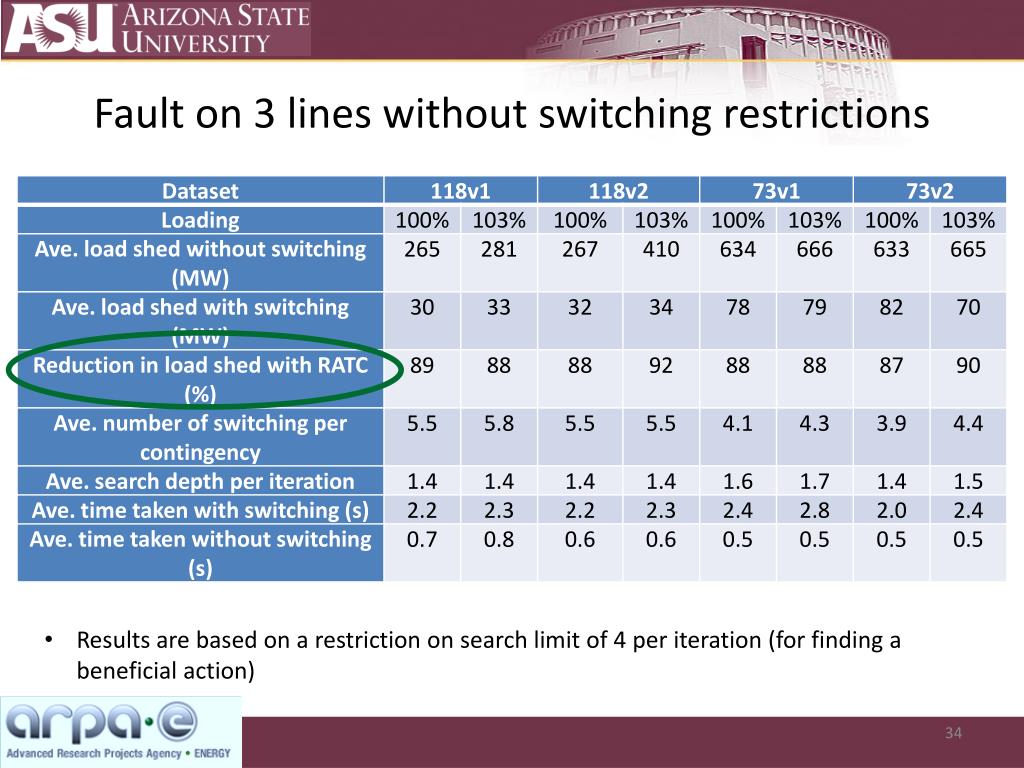 Fault on 5 lines without switching restrictions • Results are based on a restriction on search limit of 4per iteration (for finding a beneficial action)