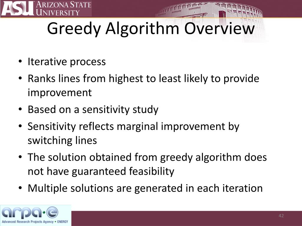 Greedy Algorithm Overview • Iterative process • Ranks lines from highest to least likely to provide improvement • Based on a sensitivity study • Sensitivity reflects marginal improvement by switching lines • The solution obtained from greedy algorithm does not have guaranteed feasibility • Multiple solutions are generated in each iteration