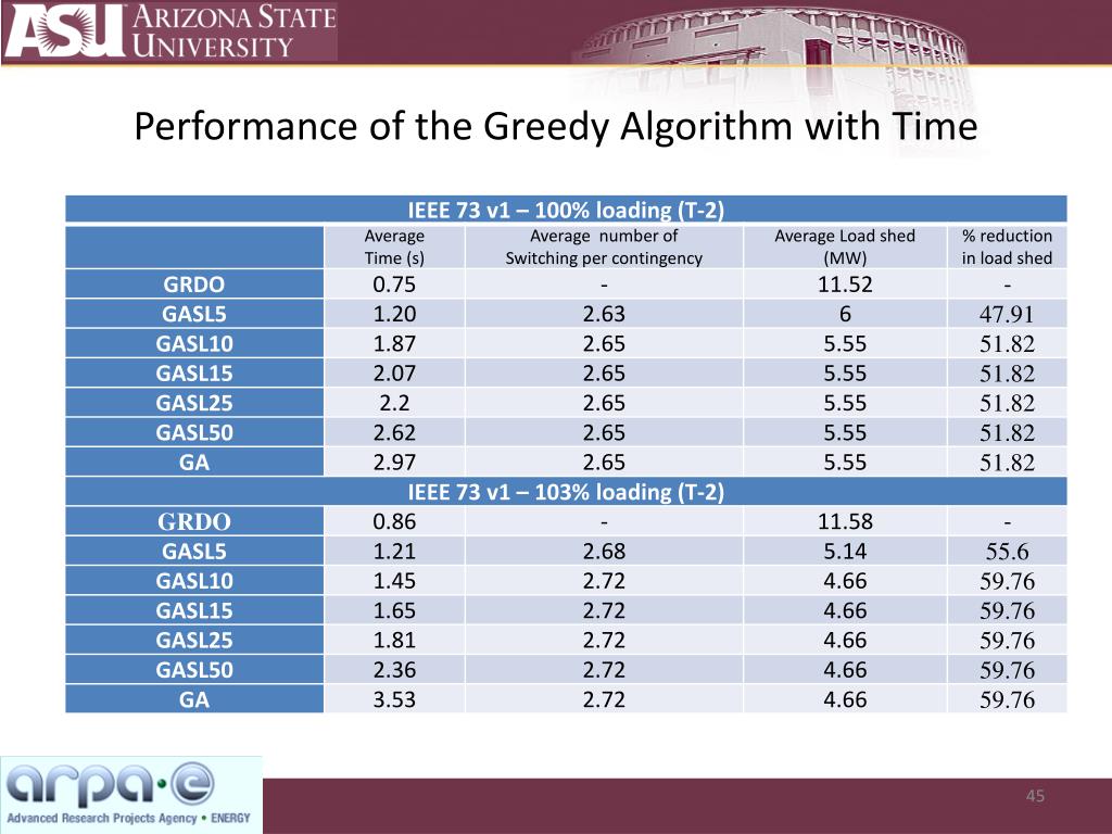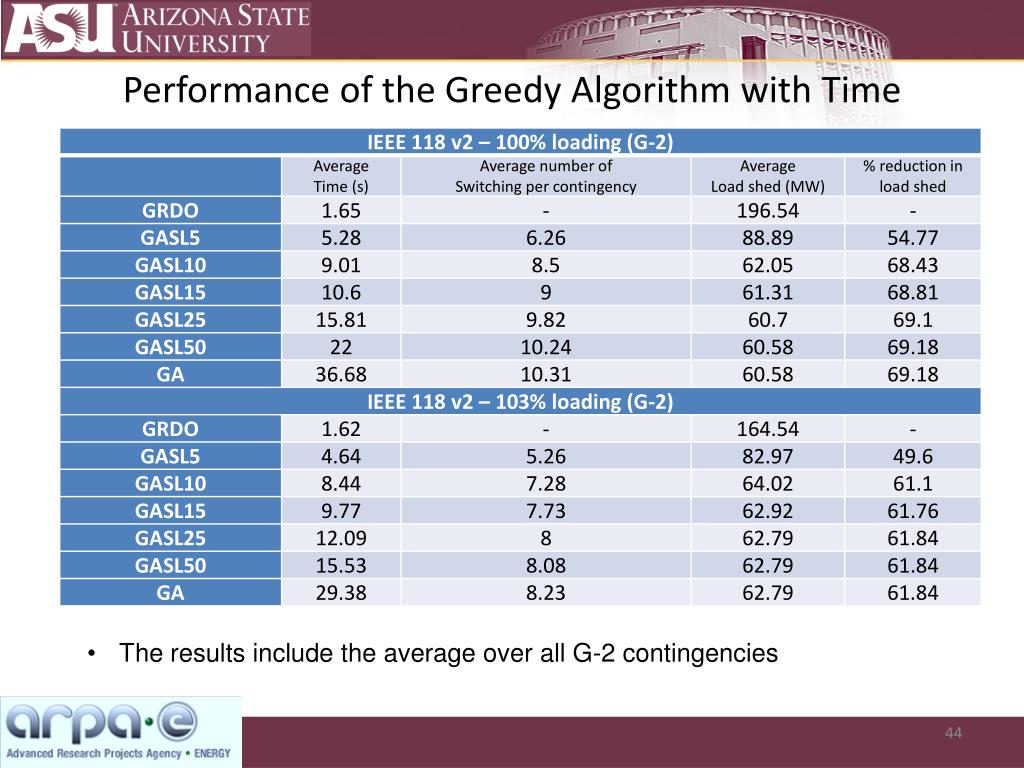 Performance of the Greedy Algorithm with Time • The results include the average over all G-2 contingencies