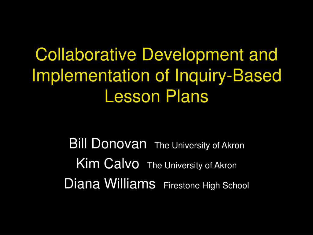 Collaborative Development and Implementation of Inquiry-Based Lesson Plans Bill Donovan The University of Akron Kim Calvo The University of Akron Diana Williams Firestone High School