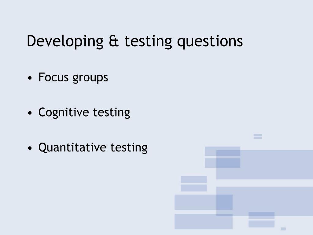 Developing & testing questions • Focus groups • Cognitive testing • Quantitative testing