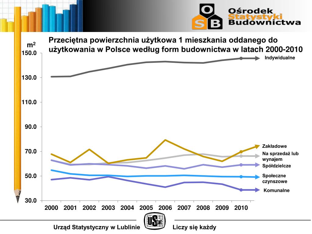 Przeciętna powierzchnia użytkowa 1 mieszkania oddanego do użytkowania w Polsce według form budownictwa w latach 2000-2010 Indywidualne Spółdzielcze Społeczne czynszowe Komunalne Urząd Statystyczny w Lublinie Liczy się każdy