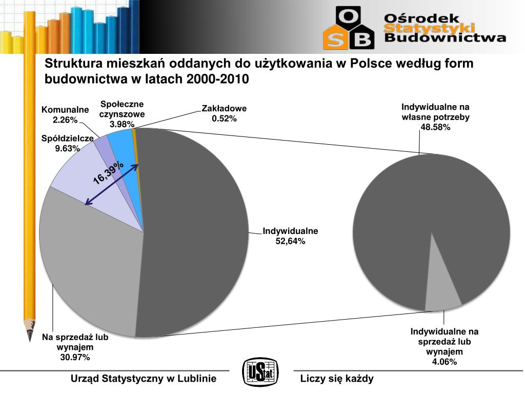 Struktura mieszkań oddanych do użytkowania w Polsce według form budownictwa w latach 2000-2010 16,39% Urząd Statystyczny w Lublinie Liczy się każdy