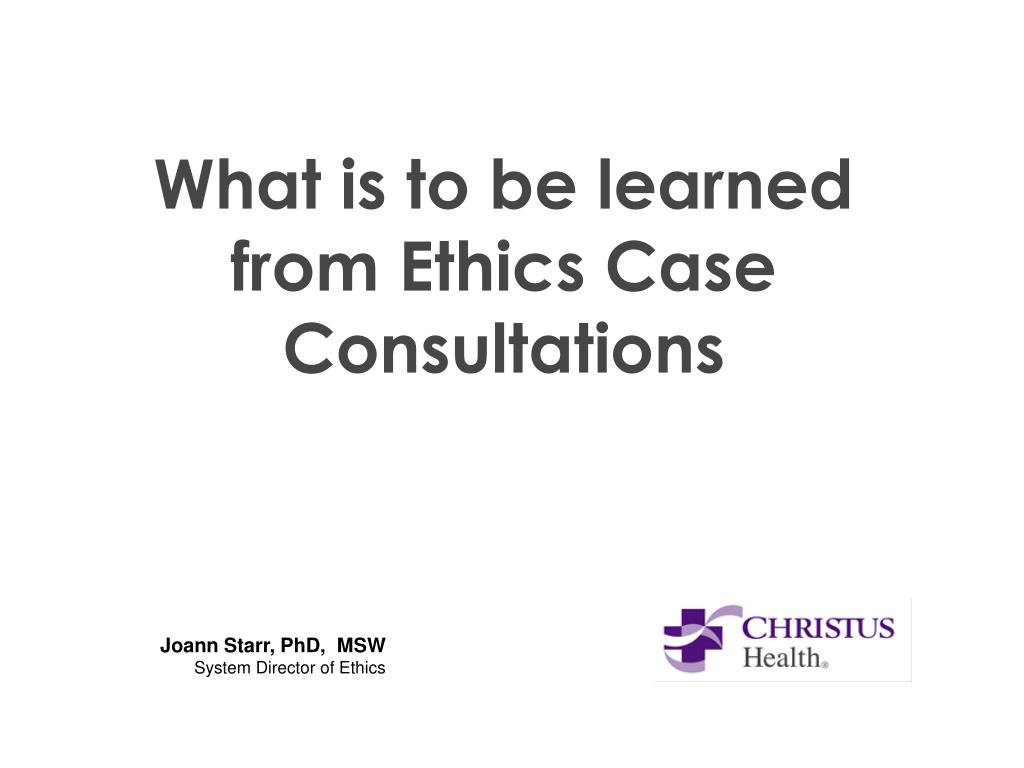 Title Slide What is to be learned from Ethics Case Consultations Joann Starr, PhD, MSW System Director of Ethics