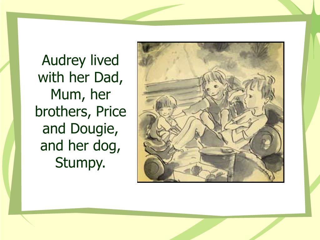 Audrey lived with her Dad, Mum, her brothers, Price and Dougie, and her dog, Stumpy.