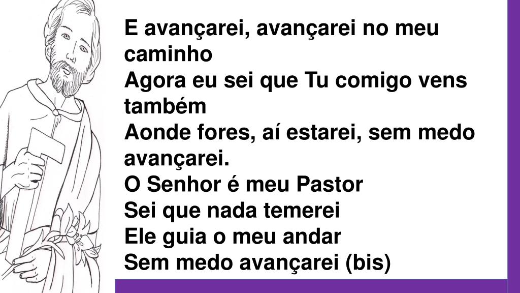 E avançarei, avançarei no meu caminho Agora eu sei que Tu comigo vens também Aonde fores, aí estarei, sem medo avançarei. O Senhor é meu Pastor Sei que nada temerei Ele guia o meu andar Sem medo avançarei (bis)