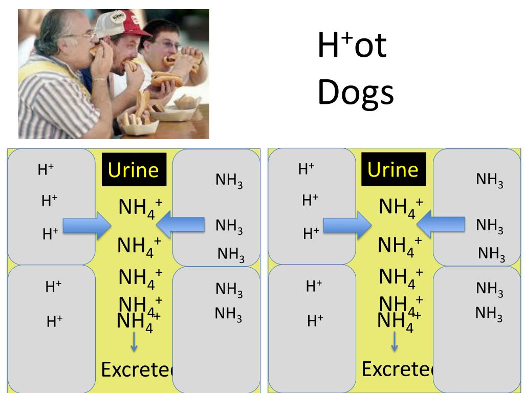 H+ot Dogs Urine Urine H+ H+ NH3 NH3 H+ H+ NH4+ NH4+ NH3 NH3 H+ H+ NH4+ NH4+ NH3 NH3 NH4+ NH4+ H+ H+ NH3 NH3 NH4+ NH4+ NH3 NH3 NH4+ NH4+ H+ H+ Excreted Excreted
