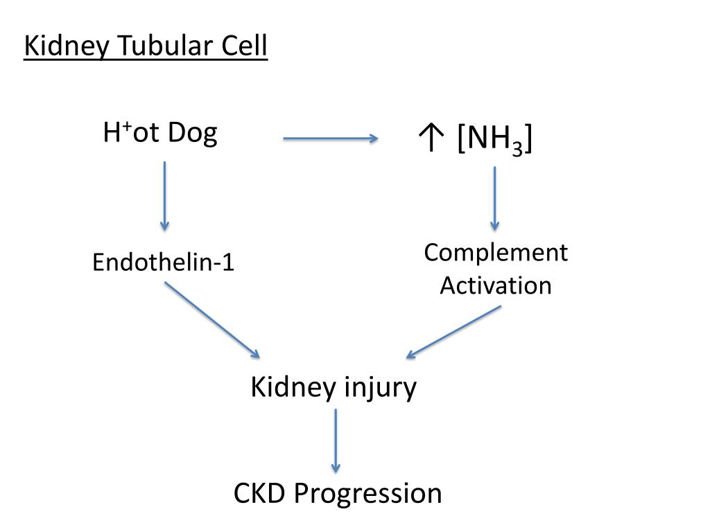 Kidney Tubular Cell H+ot Dog ↑ [NH3] Complement Activation Endothelin-1 Kidney injury CKD Progression