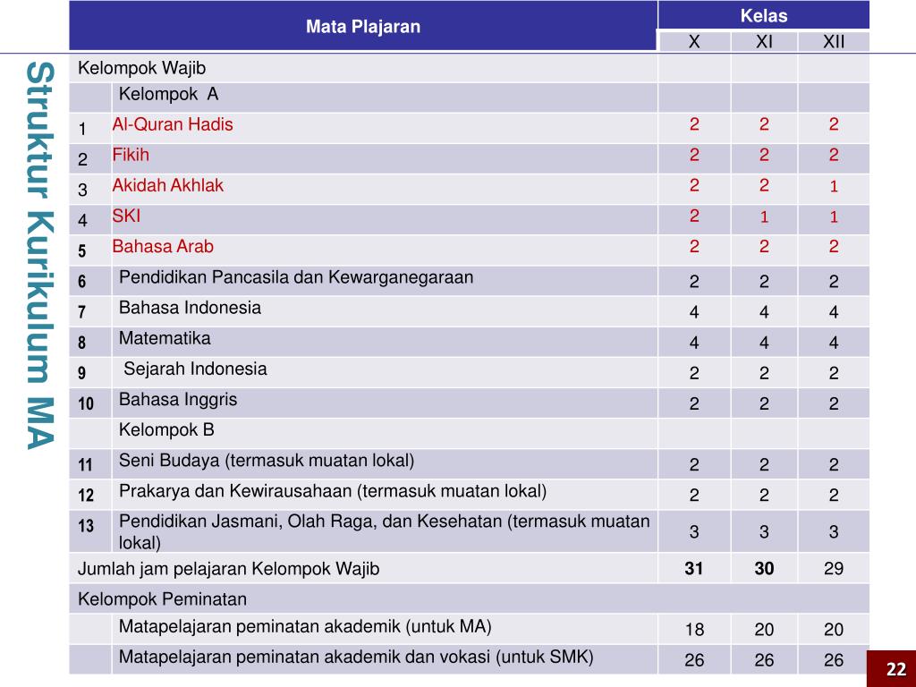 STRUKTUR KURIKULUM MTs * Muatan lokal dapat memuat Bahasa Daerah 21
