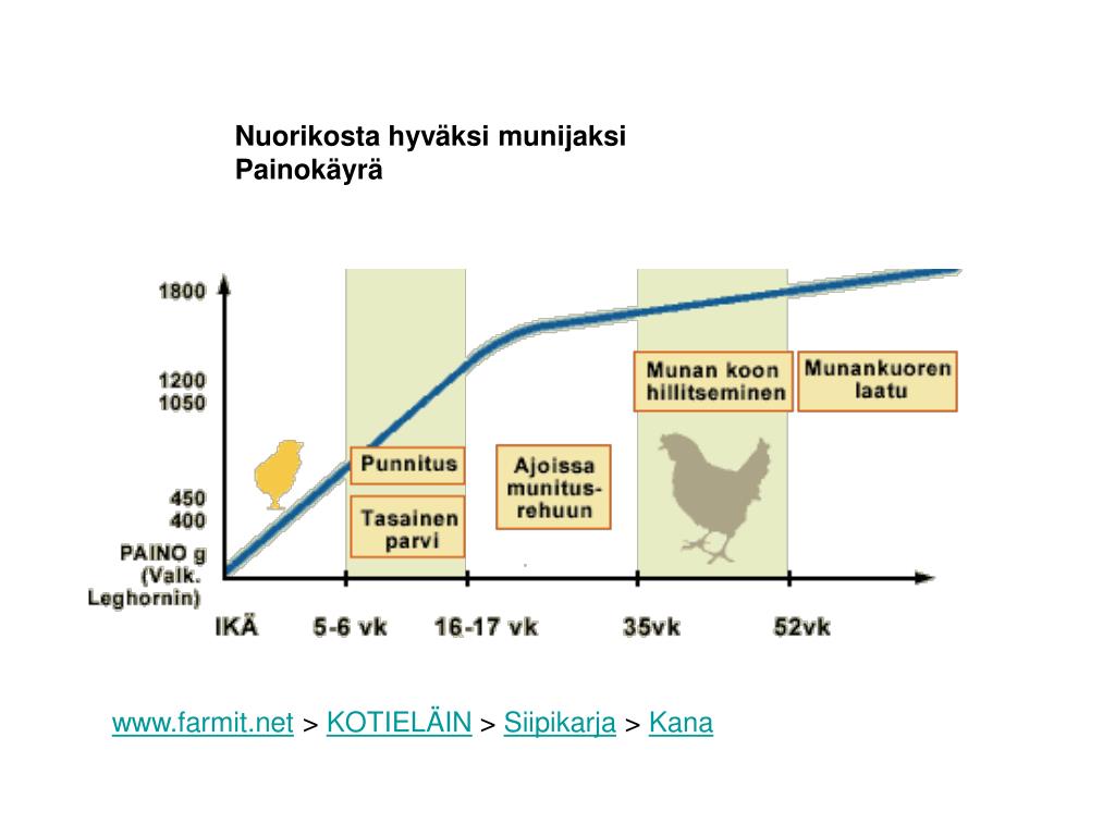 Nuorikosta hyväksi munijaksi Painokäyrä www.farmit.net > KOTIELÄIN > Siipikarja > Kana