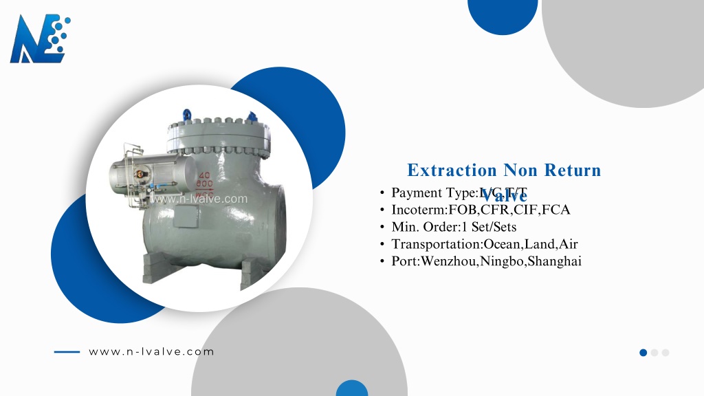 Extraction Non Return Valve • Payment Type:L/C,T/T • Incoterm:FOB,CFR,CIF,FCA • Min. Order:1 Set/Sets • Transportation:Ocean,Land,Air • Port:Wenzhou,Ningbo,Shanghai www.n-lvalve.com