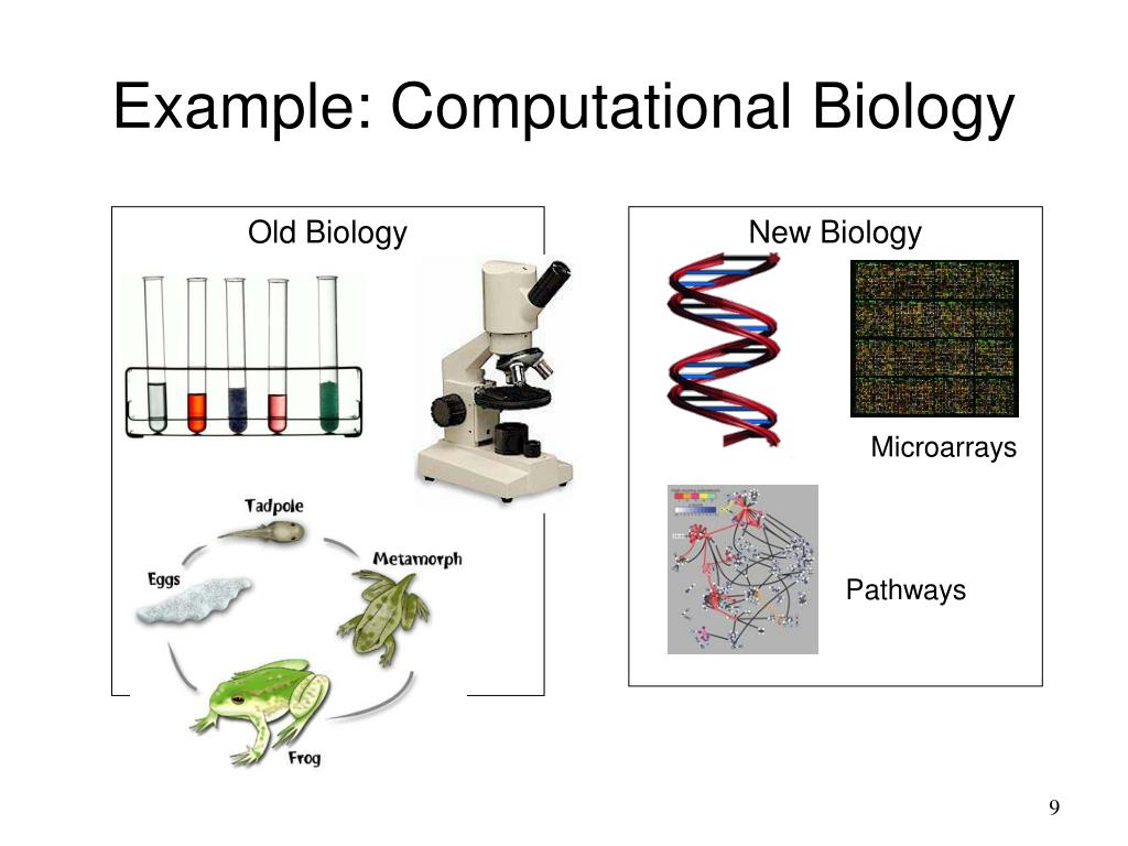 New Biology Microarrays Pathways Example: Computational Biology Old Biology