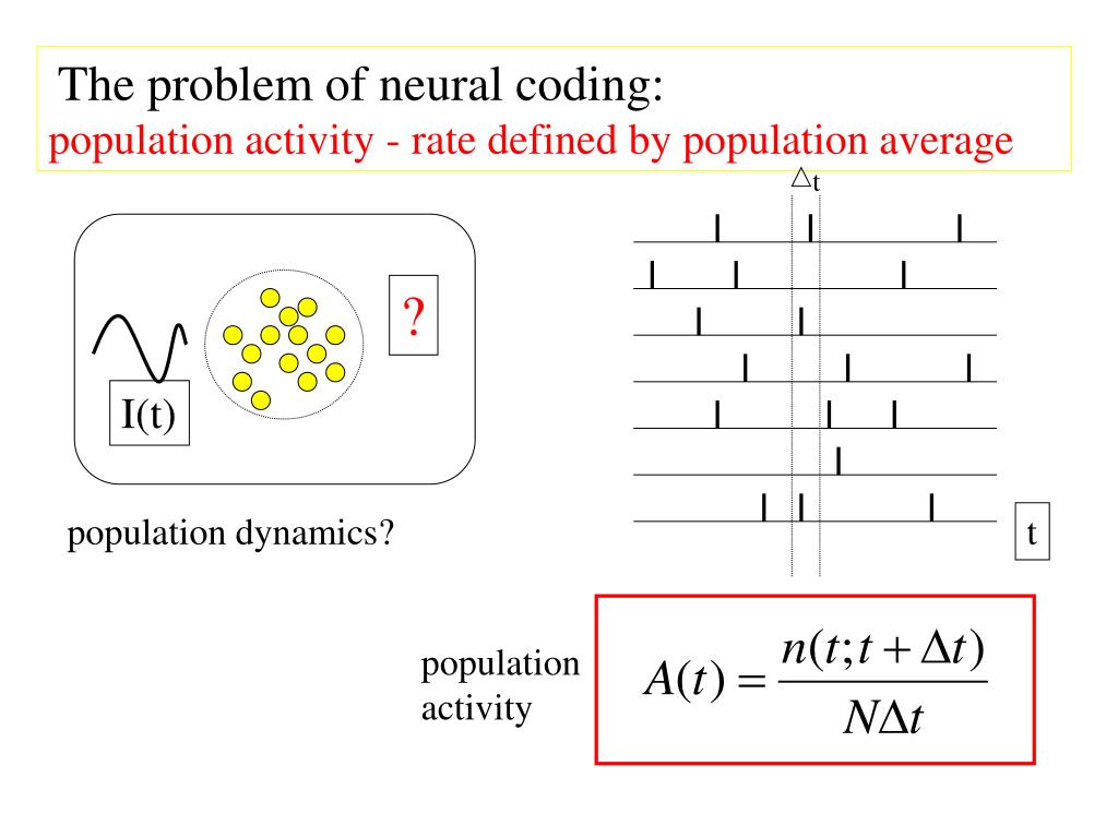 ? I(t) t population activity The problem of neural coding: population activity - rate defined by population average t population dynamics?