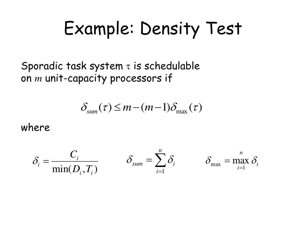 Example: Density Test Sporadic task system is schedulable on m unit-capacity processors if where