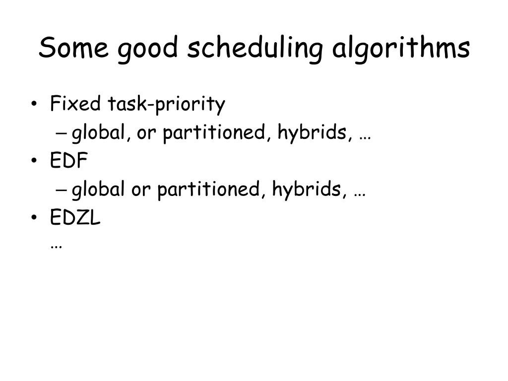 Some good scheduling algorithms • Fixed task-priority • global, or partitioned, hybrids, … • EDF • global or partitioned, hybrids, … • EDZL…