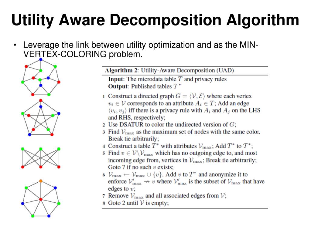 Utility Aware Decomposition Algorithm • Leverage the link between utility optimization and as the MIN-VERTEX-COLORING problem.