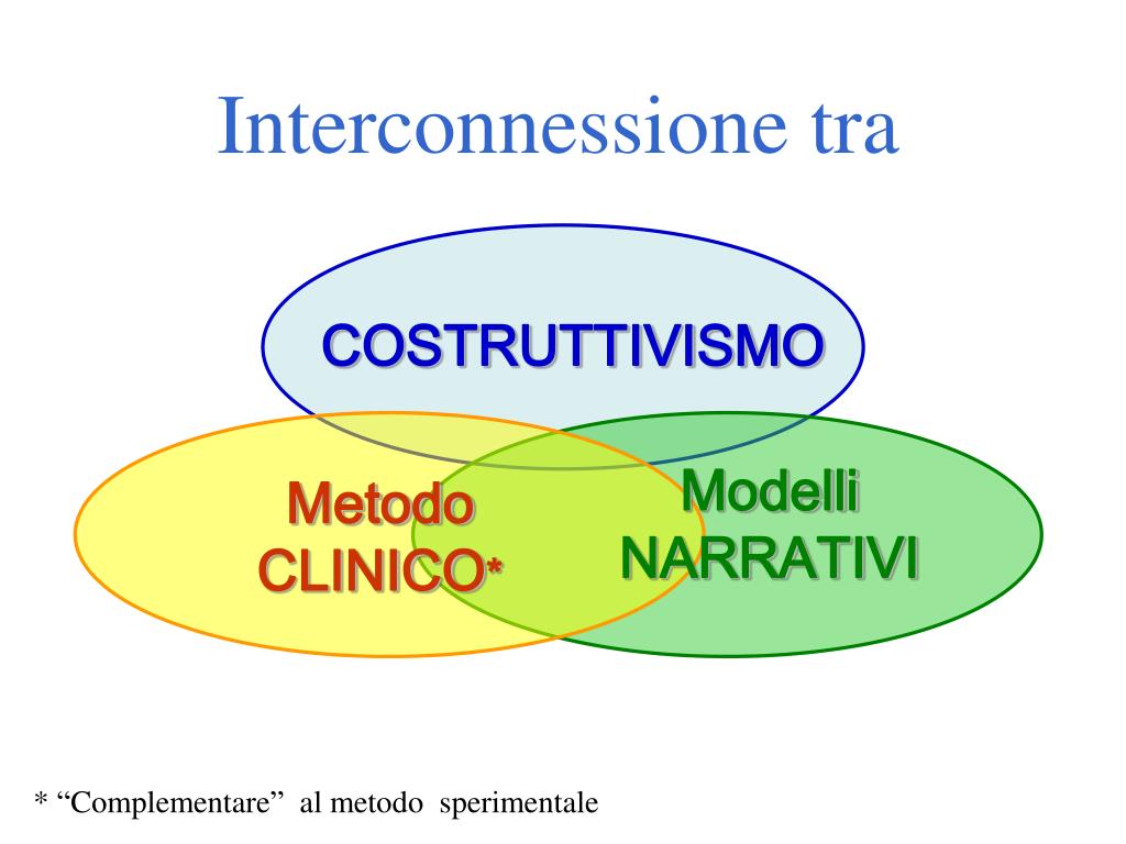 Interconnessione tra COSTRUTTIVISMO Modelli NARRATIVI Metodo CLINICO* * “Complementare” al metodo sperimentale