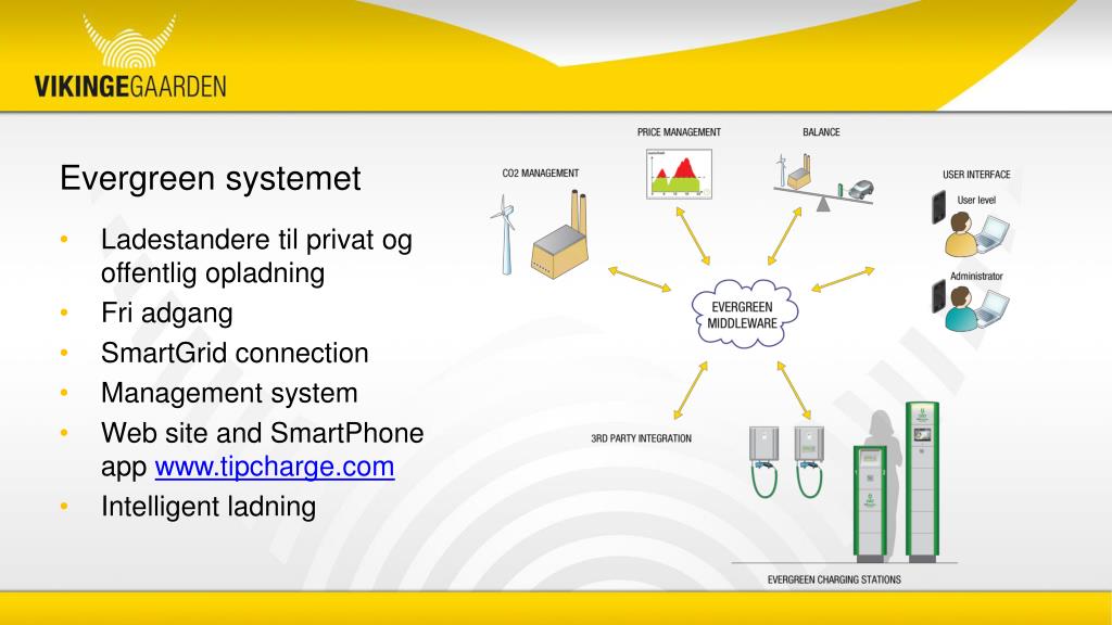 Evergreen systemet • Ladestanderetilprivatogoffentligopladning • Fri adgang • SmartGridconnection • Management system • Web site and SmartPhone app www.tipcharge.com • Intelligent ladning