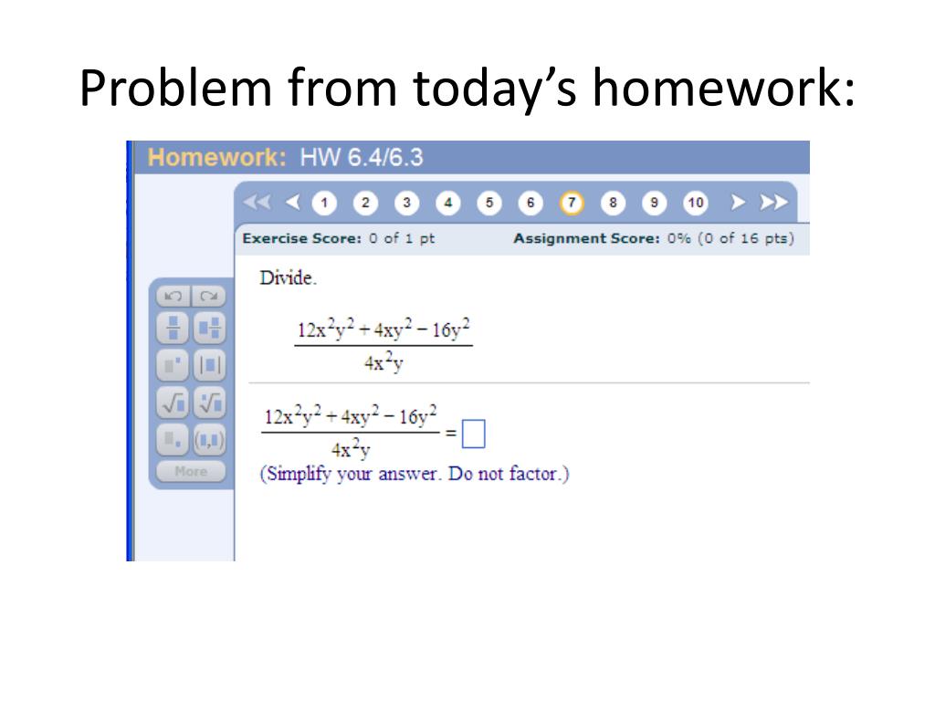 Example Section 6.4 Dividing a polynomial by a monomial Divide each term of the polynomial separately by the monomial.