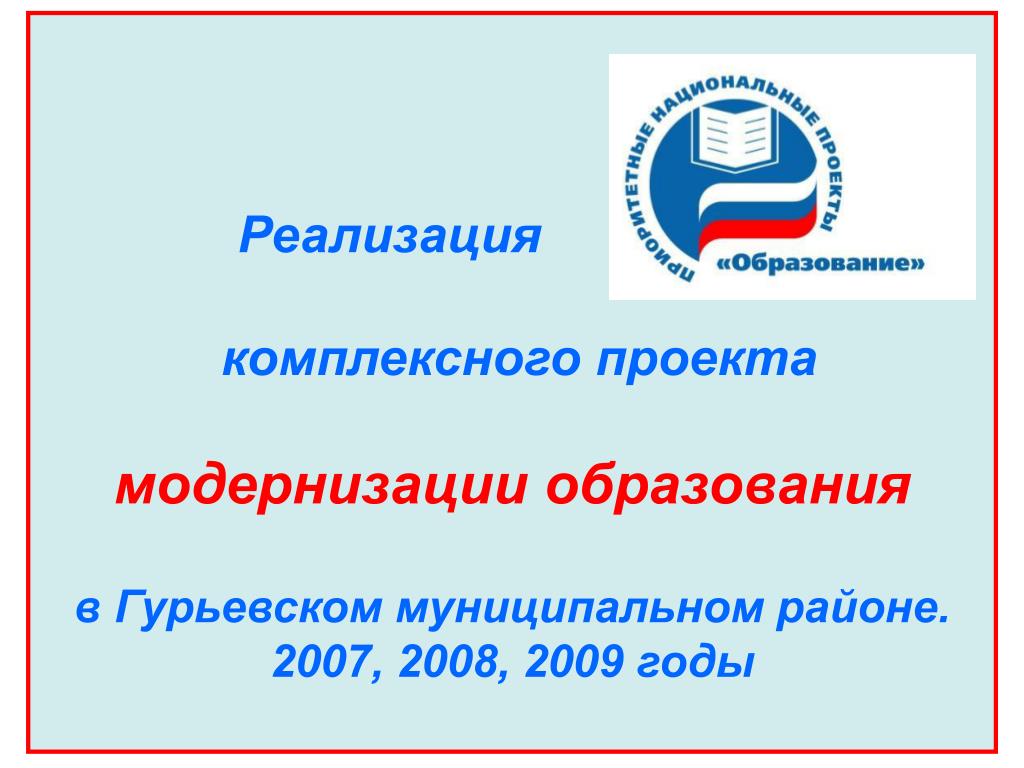 Реализация комплексного проекта модернизации образования в Гурьевском муниципальном районе. 2007, 2008, 2009 годы
