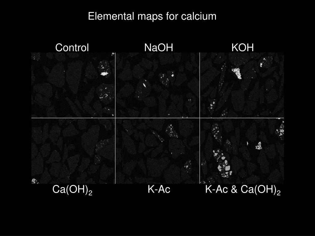 Elemental maps for calcium Control NaOH KOH Ca(OH)2 K-Ac K-Ac & Ca(OH)2