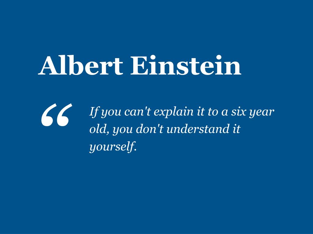 Albert Einstein If you can't explain it to a six year old, you don't understand it yourself. Do not make things more complicated than they are!