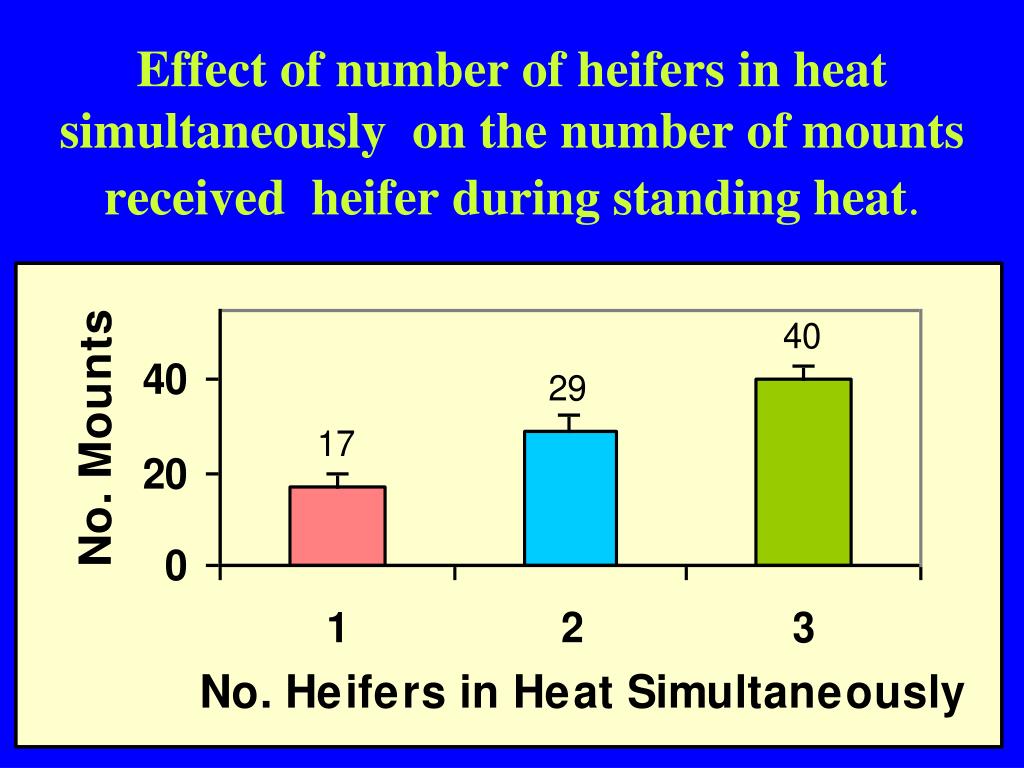 Effect of number of heifers in heat simultaneously on the number of mounts received heifer during standing heat.