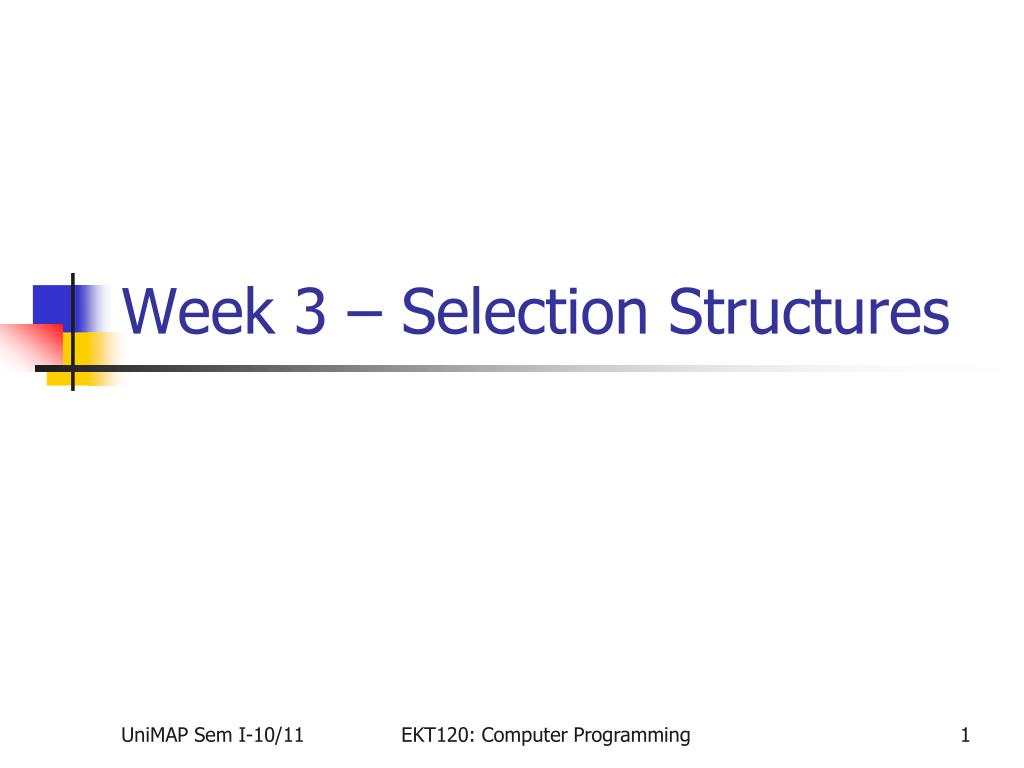 Week 3 – Selection Structures EKT120: Computer Programming