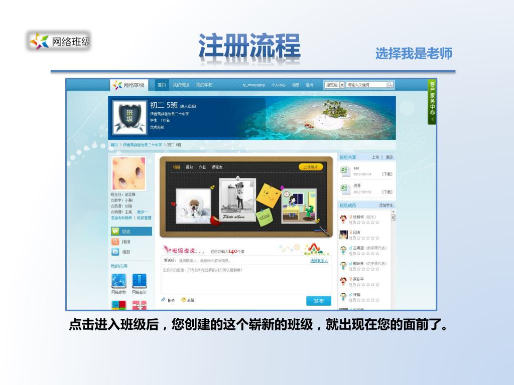 注册流程 选择我是老师 点击进入班级后,您创建的这个崭新的班级,就出现在您的面前了。