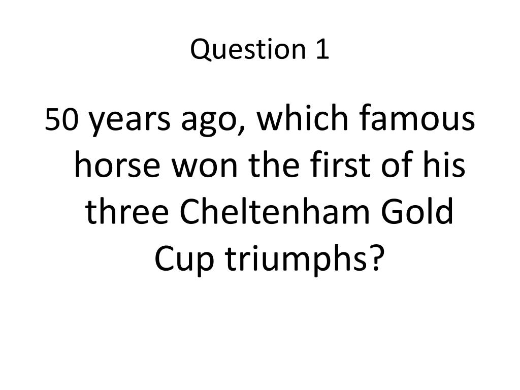 Question 1 50 years ago, which famous horse won the first of his three Cheltenham Gold Cup triumphs?
