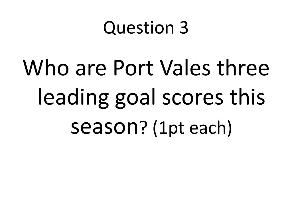 Question 3 Who are Port Vales three leading goal scores this season? (1pt each)