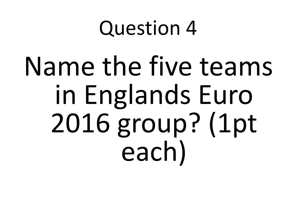 Question 4 Name the five teams in Englands Euro 2016 group? (1pt each)