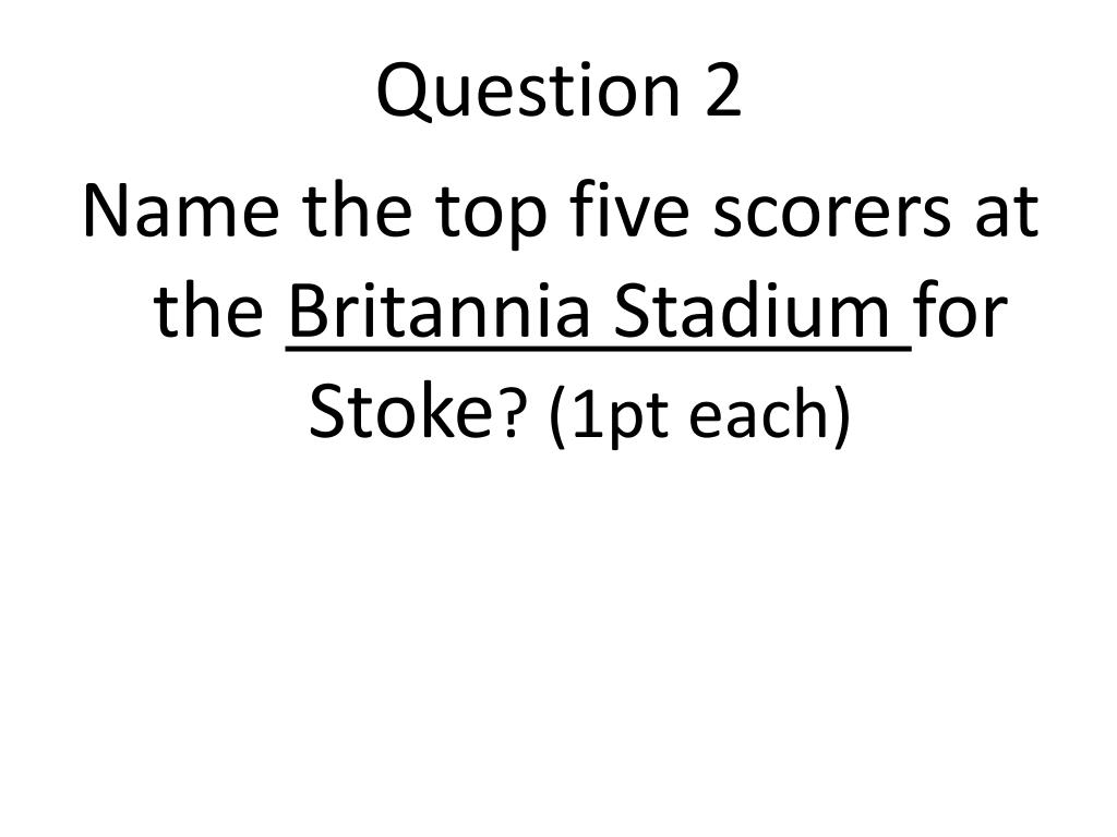 Question 2 Name the top five scorers at the Britannia Stadium for Stoke? (1pt each)