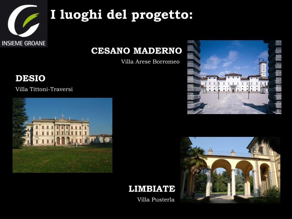 I luoghi del progetto: CESANO MADERNO Villa Arese Borromeo DESIO Villa Tittoni-Traversi LIMBIATE Villa Pusterla