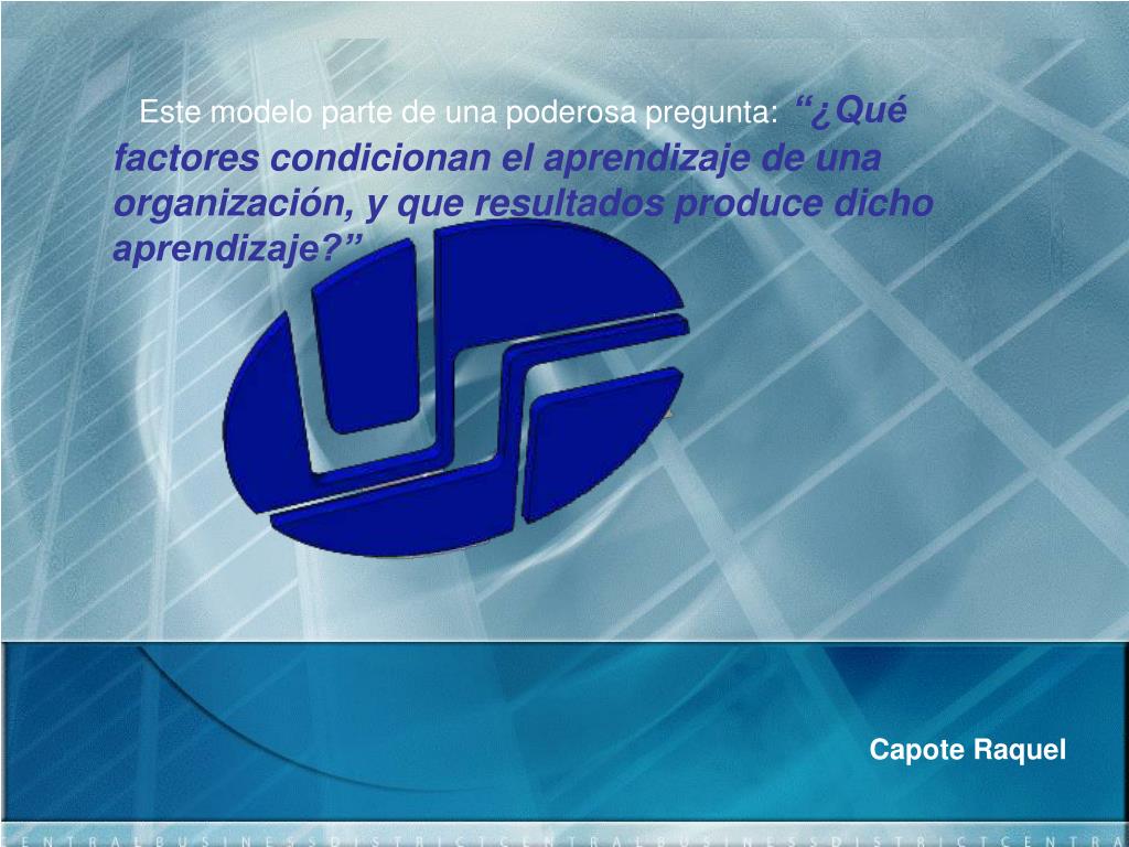Este modelo parte de una poderosa pregunta:“¿Qué factores condicionan el aprendizaje de una organización, y que resultados produce dicho aprendizaje?” Capote Raquel